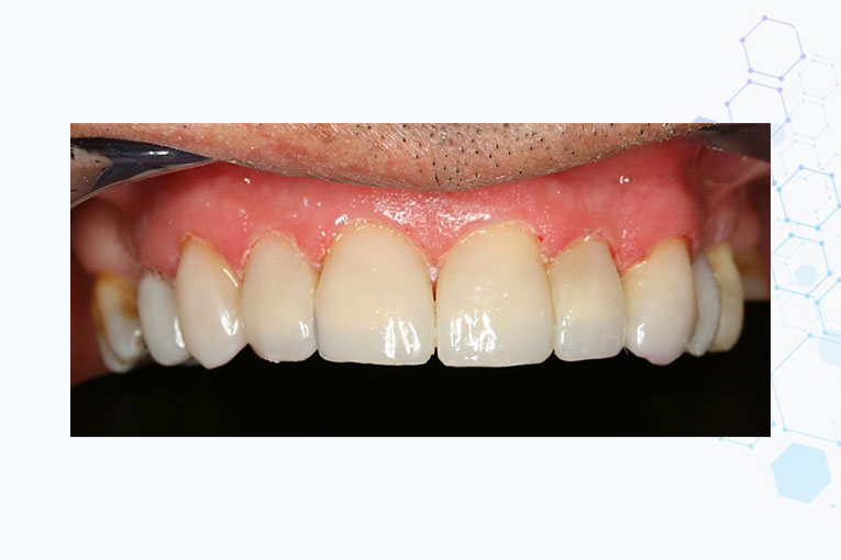 This patient had put up with porcelain crowns that were far from ideal, especially around the gum line.