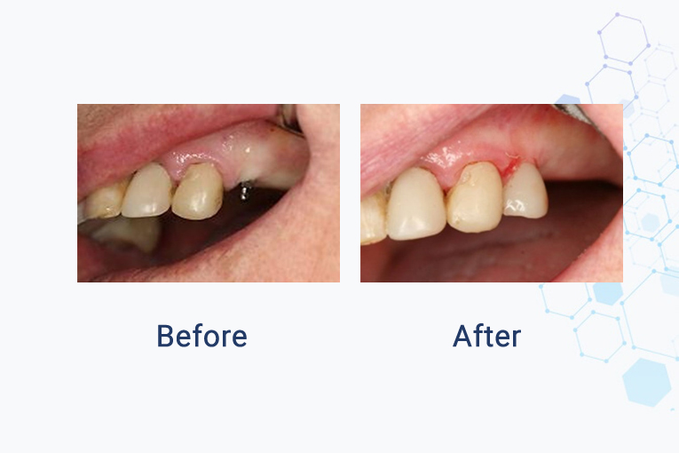 A missing tooth was replaced using a mini implant and a composite crown in one visit.