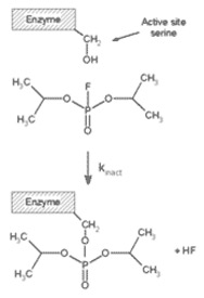Reaction of the irreversible inhibitor diisopropyl fluorophosphate with a serine protease